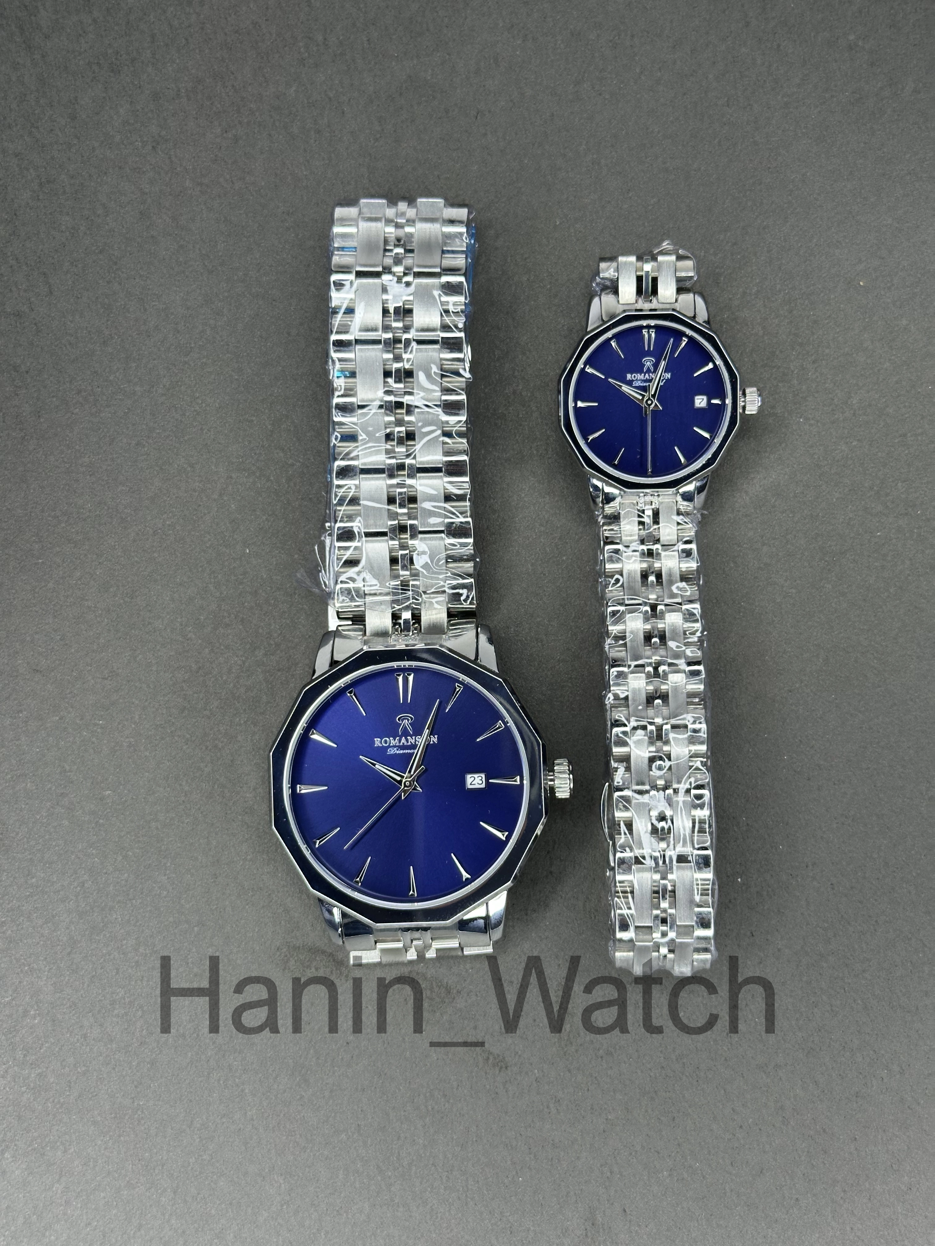 ست ساعت مچی رومانسون با طراحی مینیمال و صفحه آبی لاجوردی، یک انتخاب ایدهآل برای زوجهایی است که به دنبال استایلی شیک، رسمی و ماندگار هستند. بدنهی تمام استیل این مدل در کنار بند نقرهای چندلینکی، ظاهری لوکس و مقاوم ایجاد کرده است. هر دو ساعت دارای صفحهی ساده و خوانا هستند و عقربهها و شاخصهای براق جلوهای جذاب به آنها بخشیده است. مدل مردانه مجهز به نمایشگر تاریخ بوده و هر دو ساعت از موتور باکیفیت و دقیق بهره میبرند. این ست، گزینهای مناسب برای هدیه سالگرد، جشنها و استفاده روزمره است