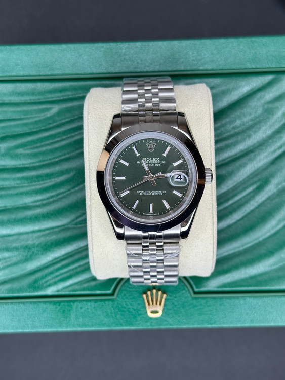 اگر به دنبال ساعتی timeless و versatile هستید که هم برای استایل روزمره و هم رسمی مناسب باشه، Rolex Datejust با صفحه سبز سازمانی Rolex بهترین انتخابه. این مدل (رفرنس 126334 یا مشابه) با قاب Oystersteel براق، بند فلزی Jubilee راحت و لنز Cyclops برای نمایش واضح تاریخ، نمادی از کیفیت سوئیسیه. ساعت داخل جعبه سبز اورجینال Rolex قرار داره که حس نو و premium رو منتقل میکنه. مناسب مردان و زنان حرفهای، این ساعت ترکیبی از دقت، زیبایی و دوامه – ایدهآل برای هدیه یا کلکسیون شخصی.