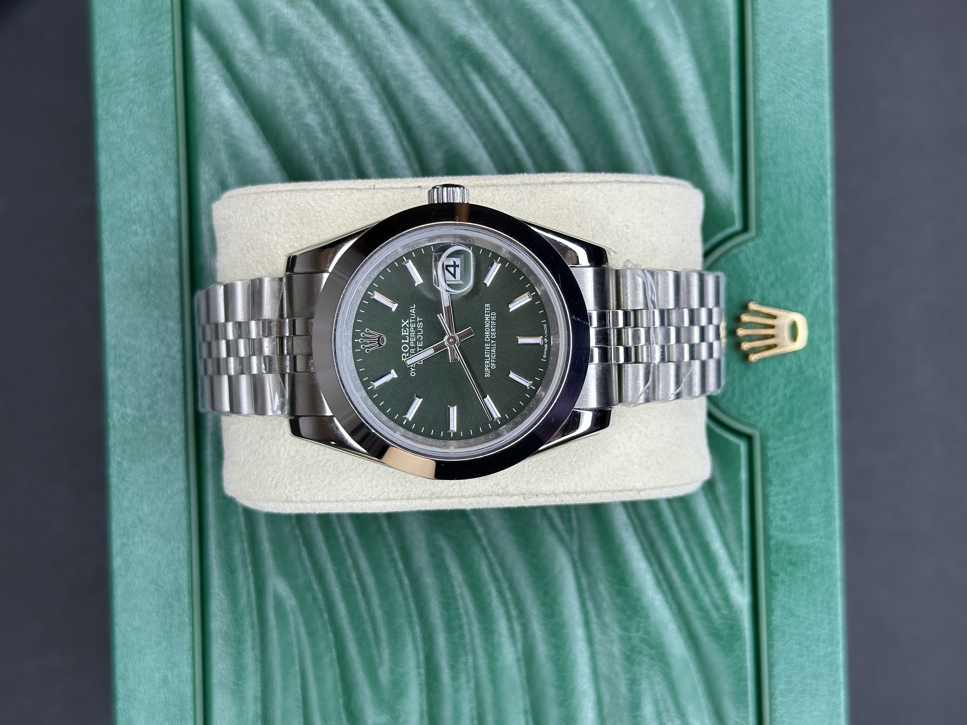 ساعت مچی Rolex Datejust | مدل صفحه سبز، بند Jubilee فلزی | Cyclops و جعبه سبز